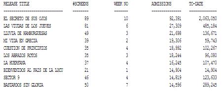 Rankings: Las 10 peliculas mas vistas: Semana del 15/10/09 al 21/10/09